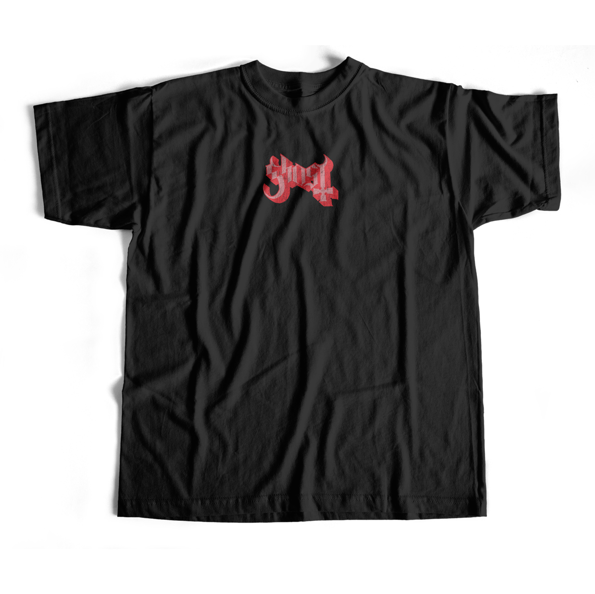 Camiseta com uma ilustração original inspirada na banda Ghost, misturando misticismo e teatralidade, traduzindo a aura ritualística e o visual marcante da banda, feita para quem aprecia o oculto com estilo.