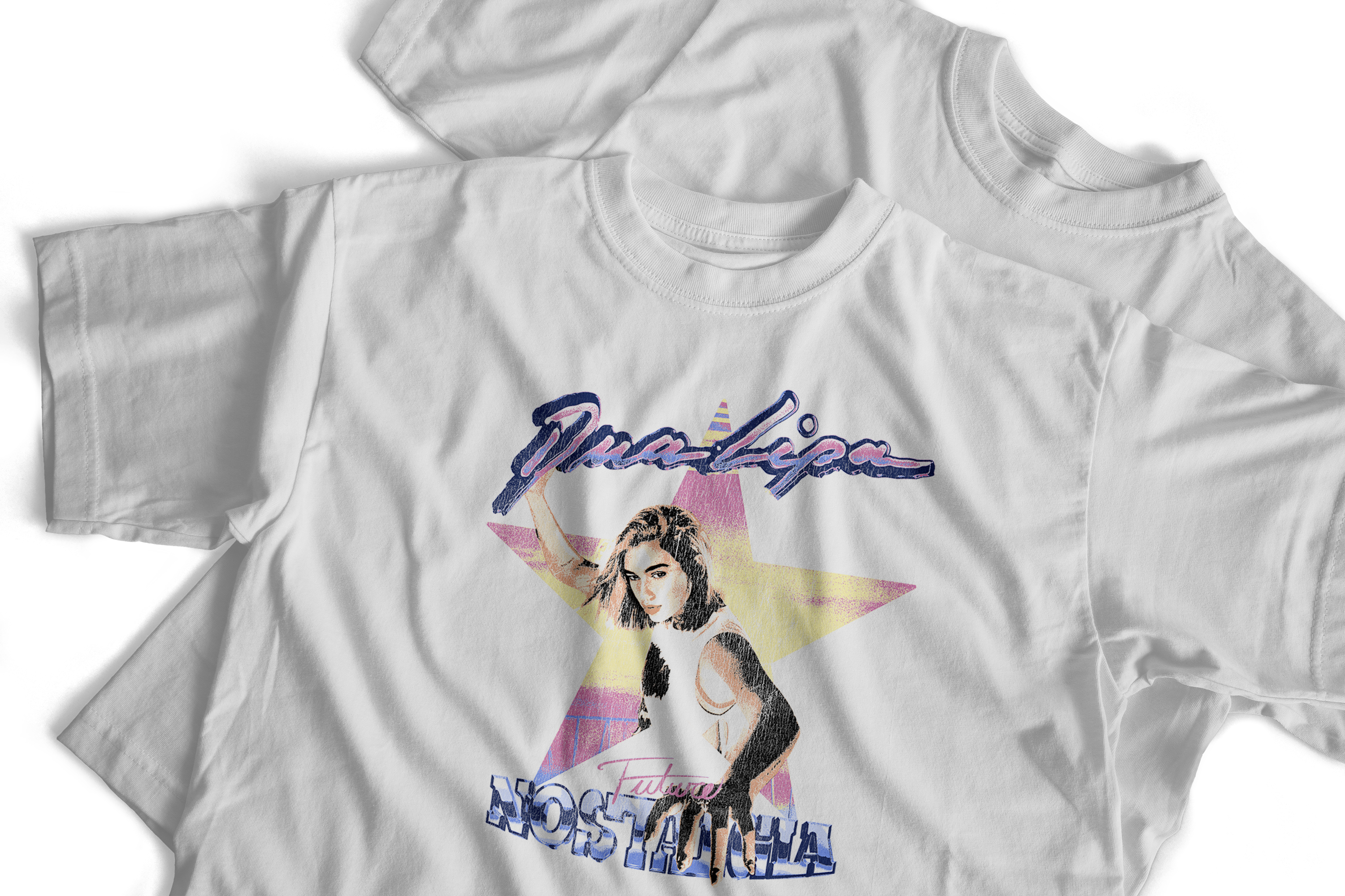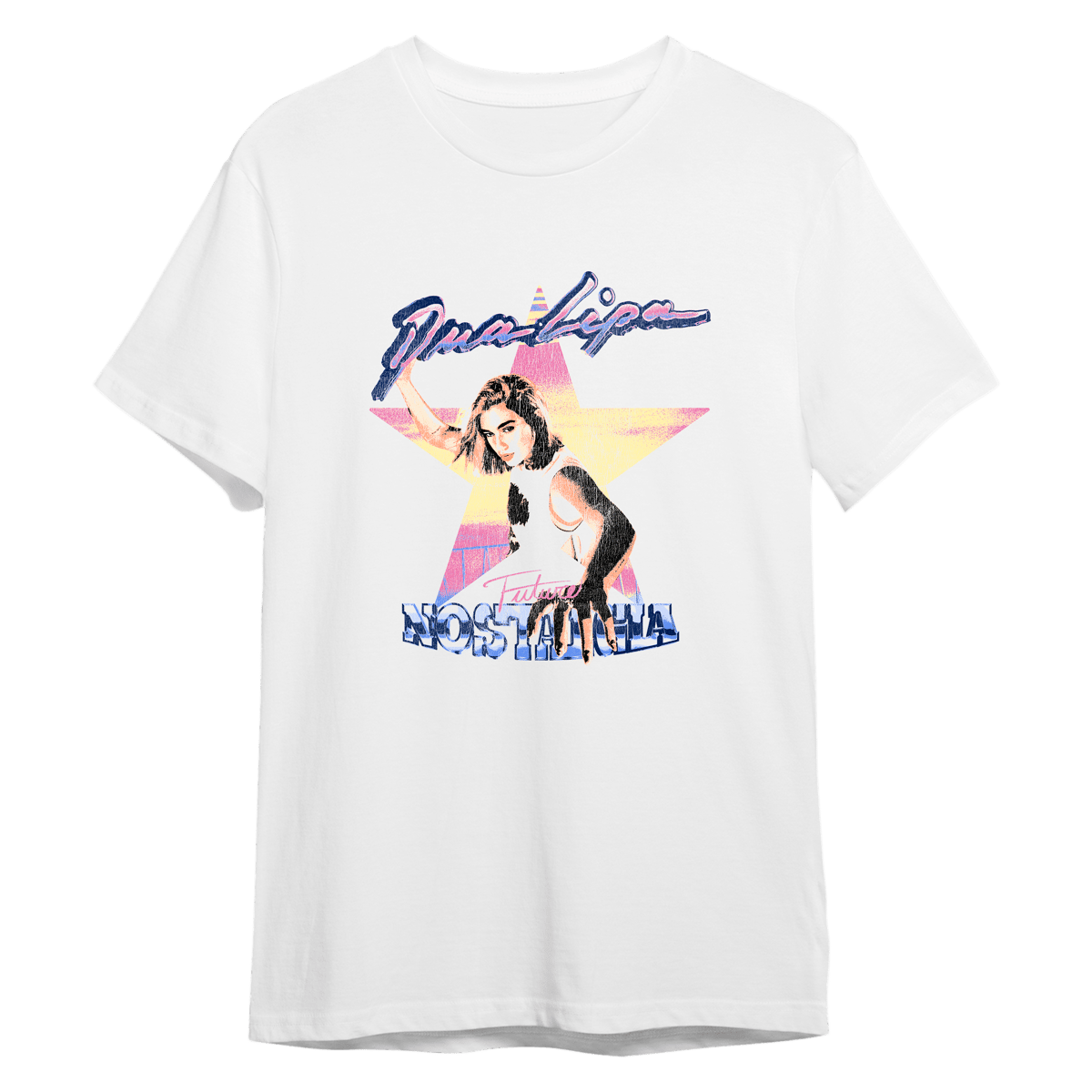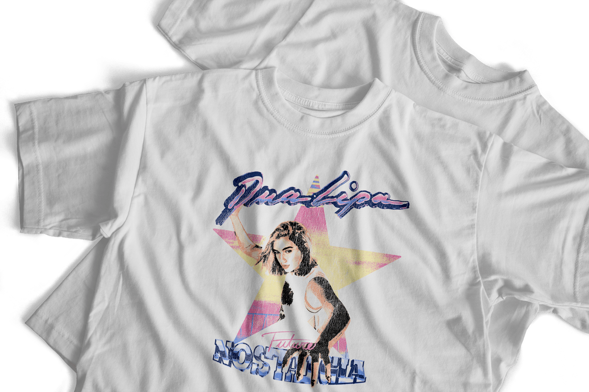Camiseta inspirada no álbum Future Nostalgia da Dua Lipa, trazendo aquela vibe retrô moderna que mistura neon, disco e pop futurista. Visual marcante, dançante e cheio de atitude.